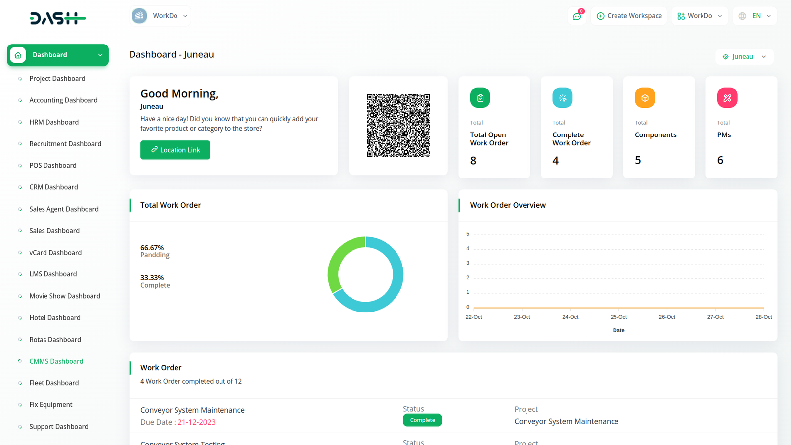 CMMS gives users deep insight into their maintenance needs with detailed work order schedules, reliable reports, dashboards, log times.