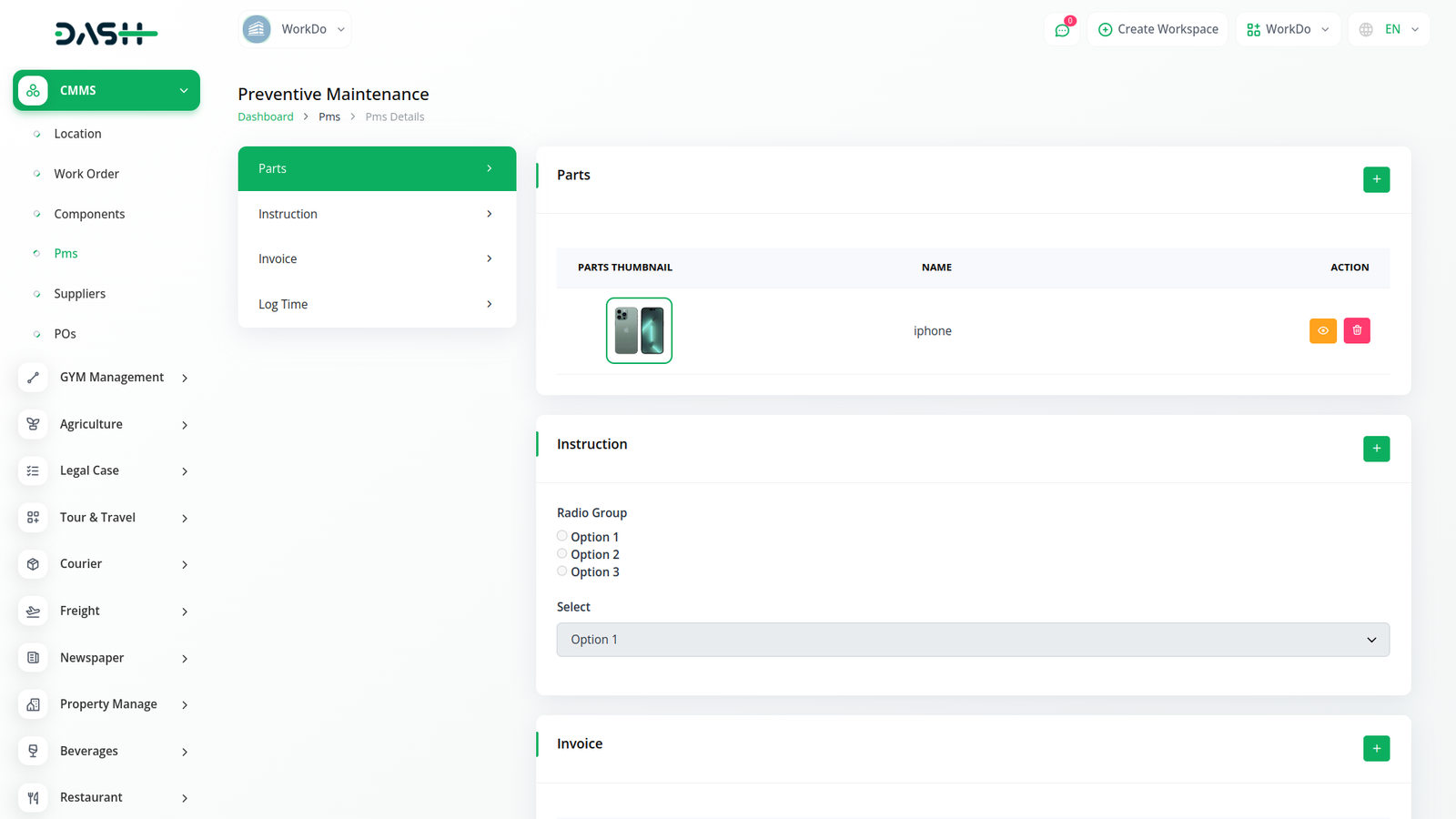 CmmsGo is the most convenient tool to manage your purchases, sales, and maintenance of the components, and parts along with outsourcing of the same following the location you are working. It makes the whole management of such a thing very transparent and usable.
